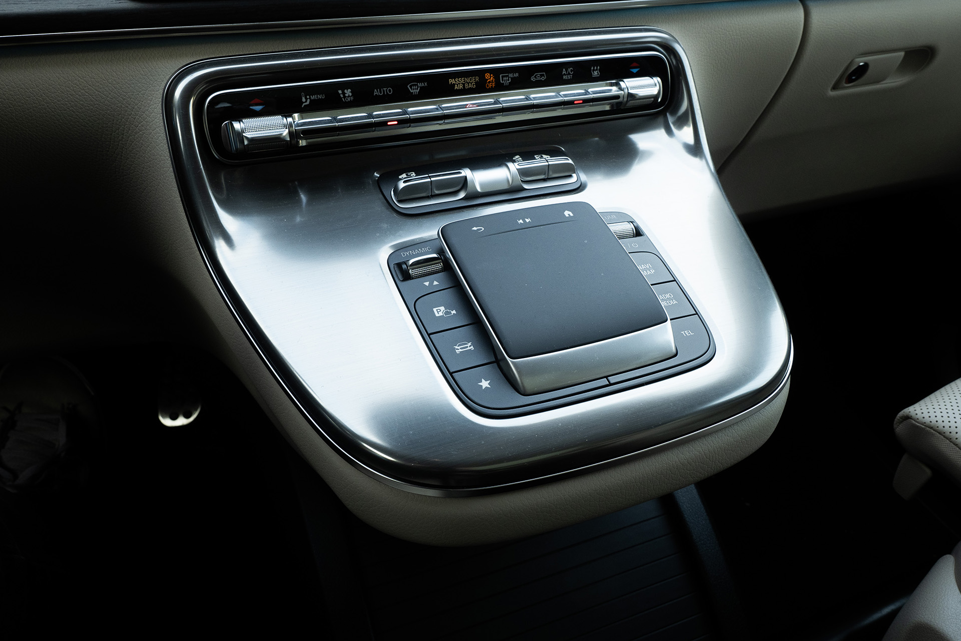 Ale čo viete v interiéri spraviť? Viete posunúť masívne luxusné sedadlá vpred, dať preč ten stredný rad a za luxusné kresla môžete dať kľudne aj bicykle na výlet. Toľko priestoru je vnútri! No a okrem toho, že pasažieri vzadu majú dobré podmienky, sú dobré podmienky aj pre tých vpredu, ktorí majú vlastne všetko, okrem toho ležadlového vyhotovenia kresiel. V300d naviac využíva najnovší systém MBUX, ktorý vie zrkadliť, riešiť veci cez hlasové ovládanie, vlastne vie všetko. No a v tomto prípade si stále zachováva aspoň externý dotykový ovládač. Z celkového pohľadu na auto je jasné, že sa snaží priblížiť osobným modelom a vnútri sa mu to reálne darí.