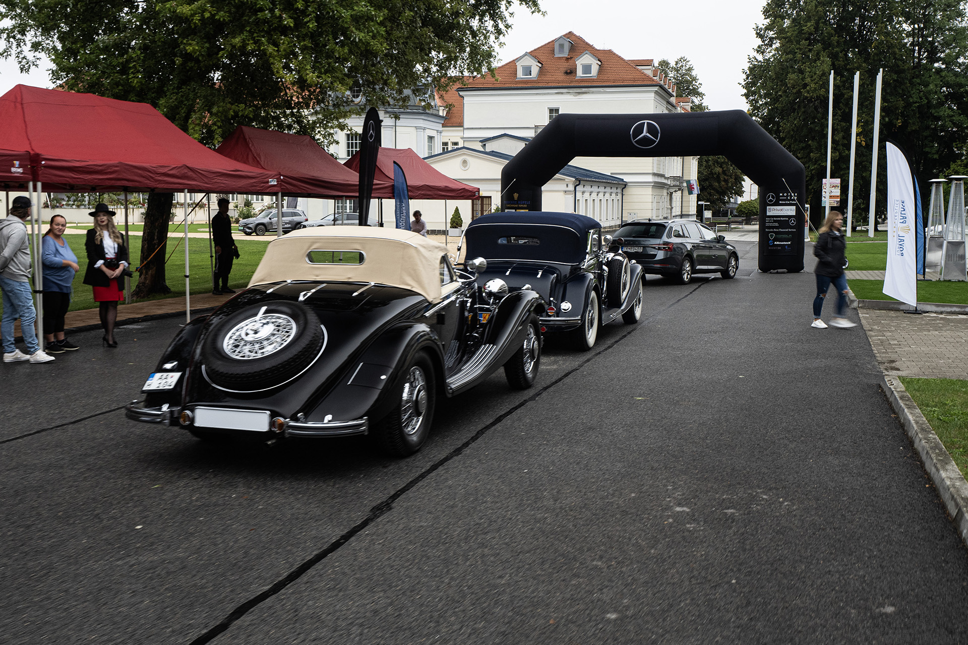 Ďalšie pokračovanie vedie cez Fačkovské sedlo až do aktuálne jednej z najznámejších obcí na Slovensku, do obce Čičmany. Aj tu je dosť času na prehliadku Radenovho domu a múzea v priľahlom objekte. Okrem toho tu na Mercedes-Benz Tour naplánovaný obed. Všetci síce parkujú na parkovisku pri vleku hore v dedine, ale tie najšialenejšie kúsky sú priamo pred reštauráciou v kaštieli. Je tu napríklad Mercedes-Benz 500K z roku 1936, ktorému odhadujeme hodnotu tak 1,3 milióna eur, lebo toto prevedenie vzniklo len v dvoch kusoch. Ďalším zaujímavým autom je Mercedes Benz 290 Spezial Roadster, ktorý tiež atakuje pomaly polmiliónovú hranicu v takomto prevedení.