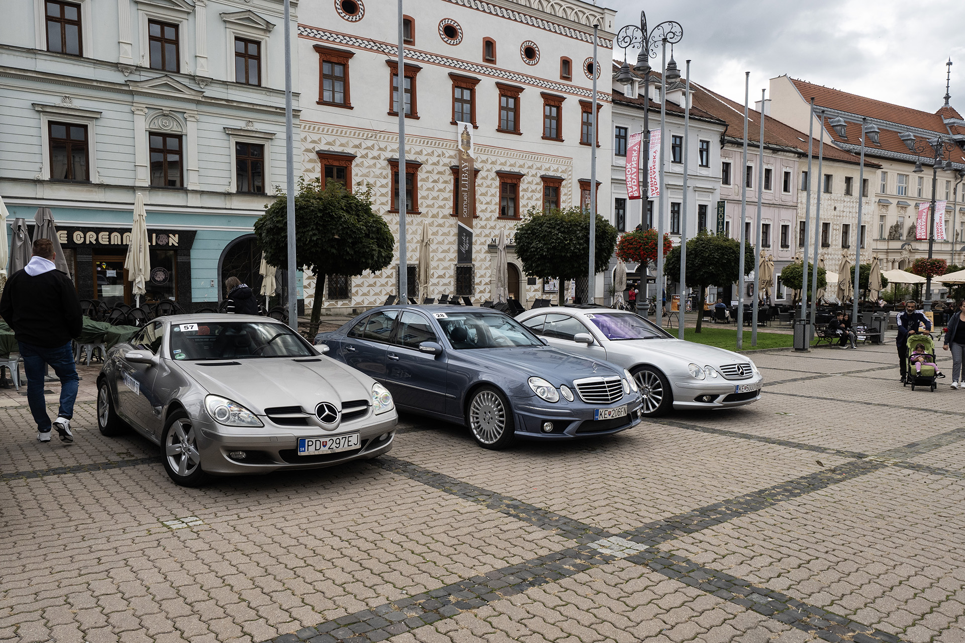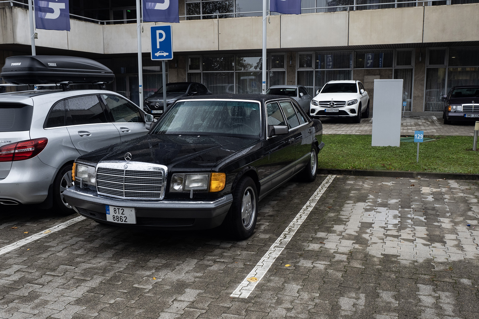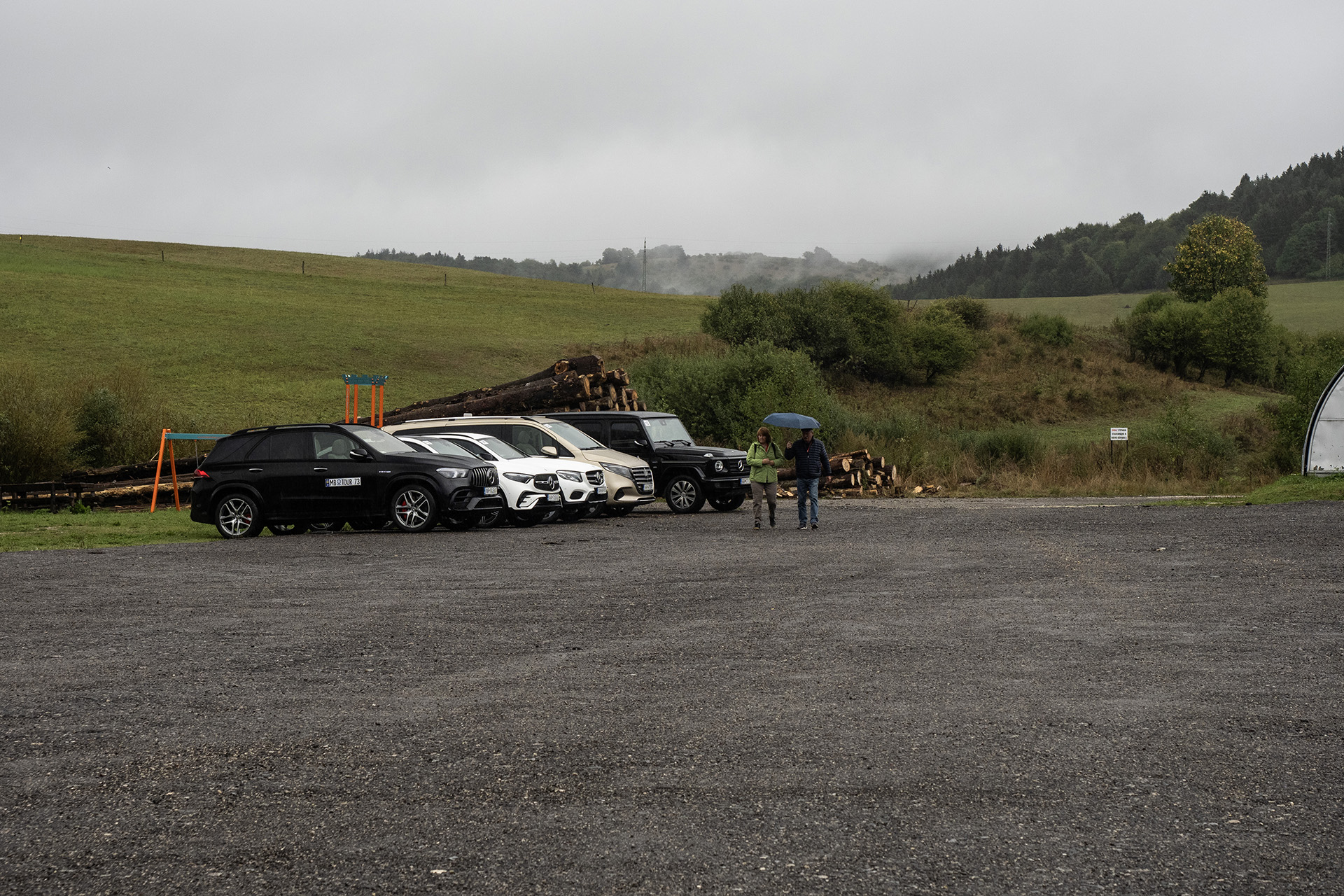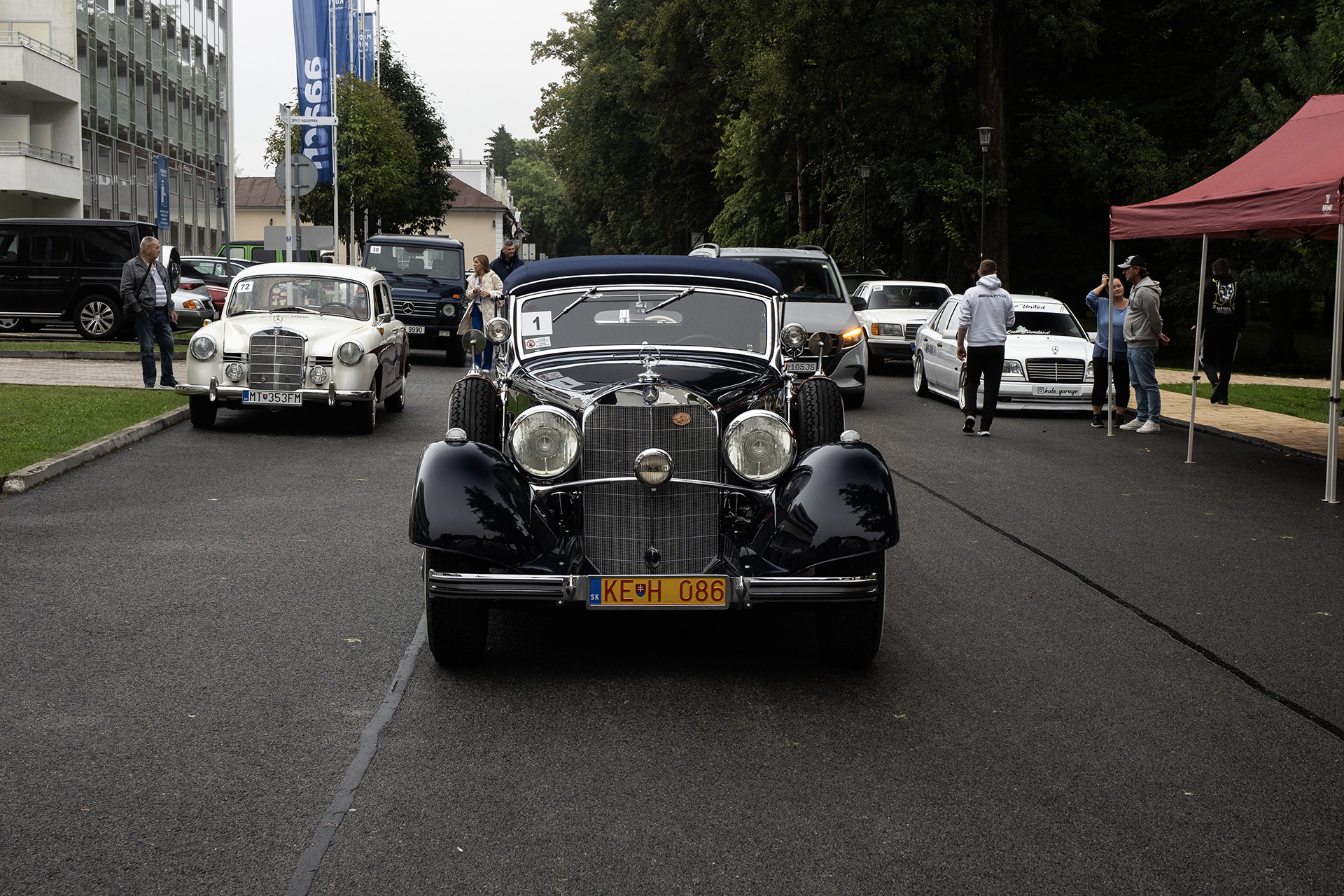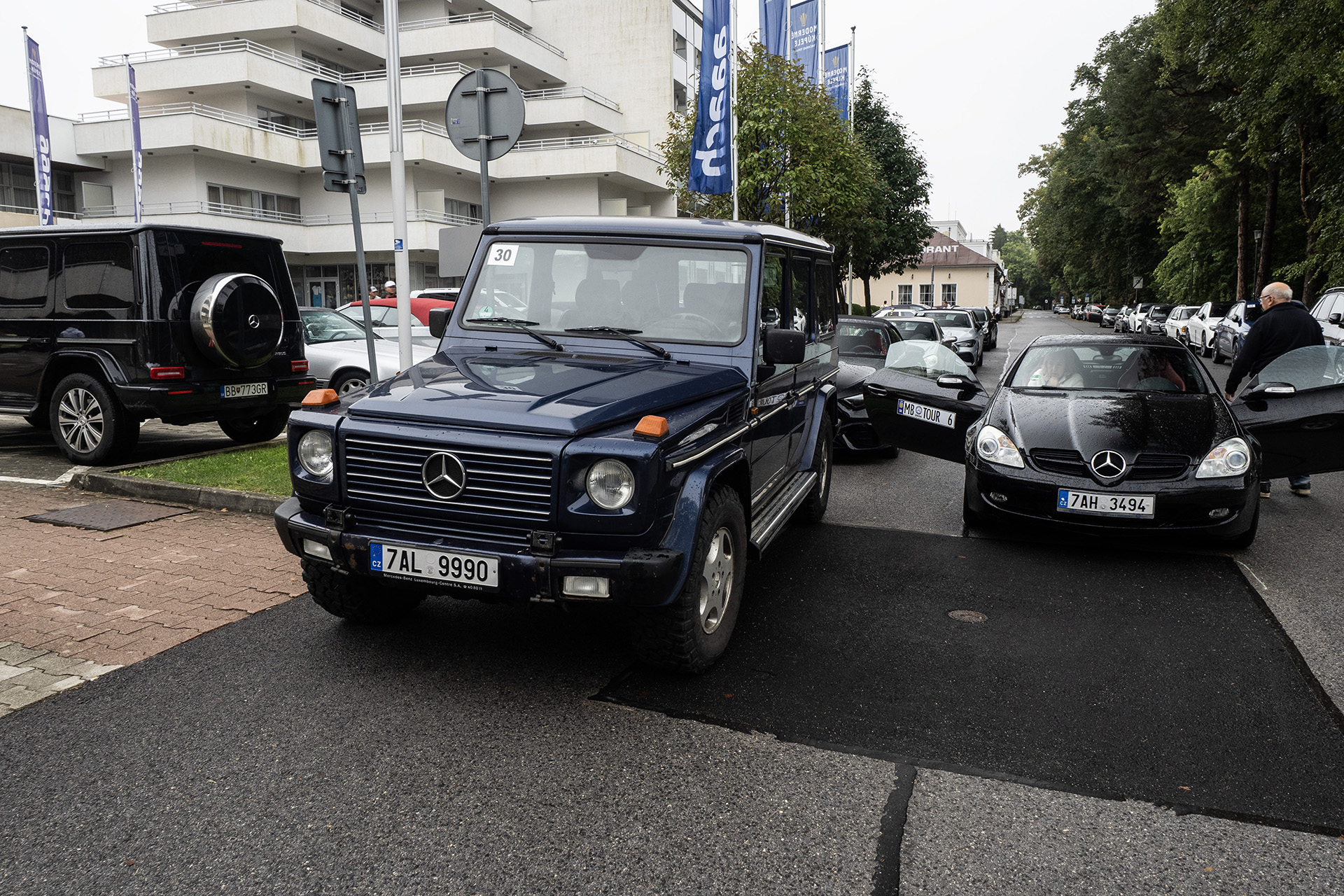 Toto sú zároveň dve najstaršie auta na celom podujatí a najmladšie majú 0 rokov, sú z roku výroby 2024 a konkrétne je to Mercedes-AMG G63 krikľavej zelenej matnej farby a zlatý Mercedes triedy V, ktorým sme absolvovali celú Tour my.