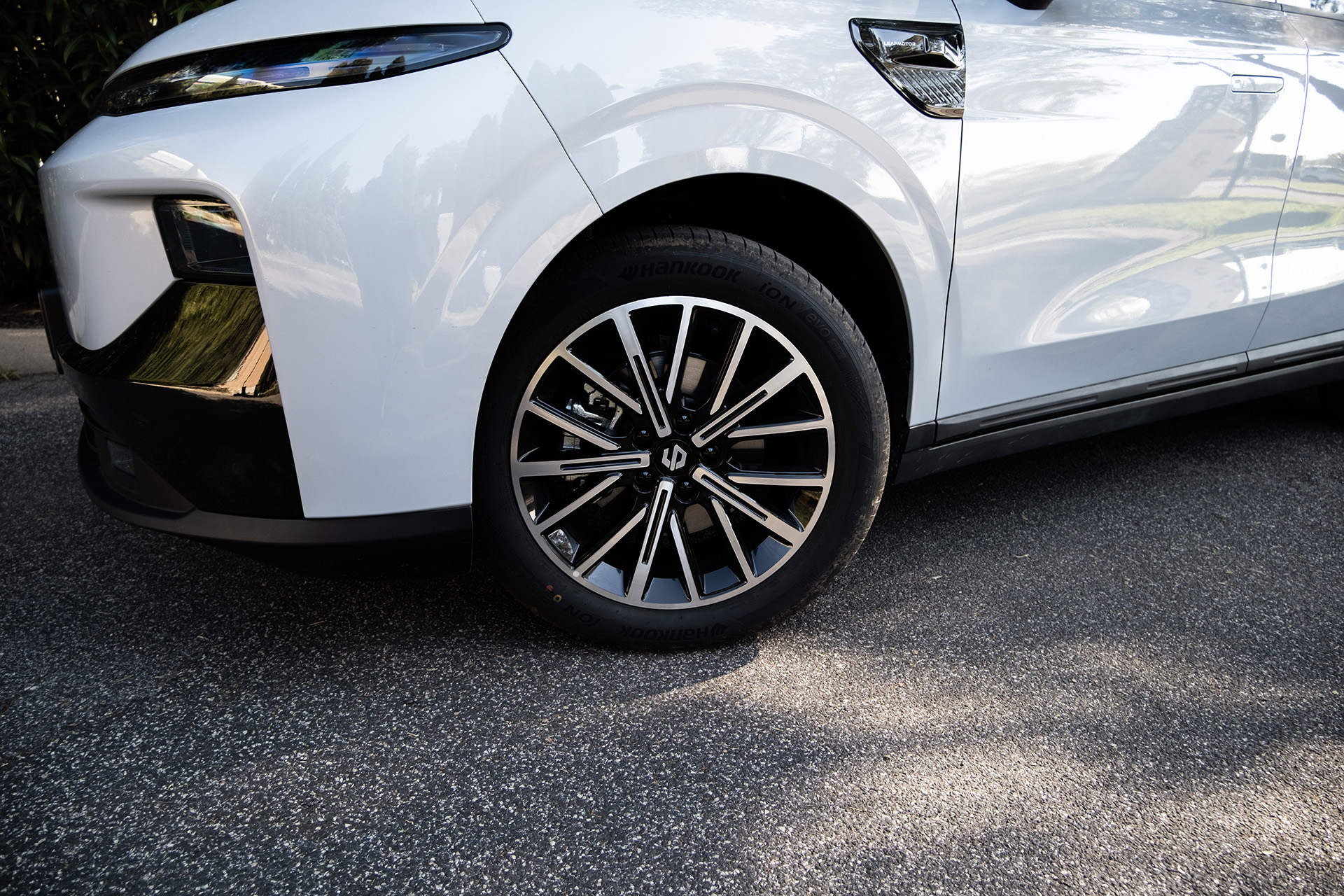 Zlepšenie cítiť aj pri pneumatikách. Kým predchádzajúce verzie používali menej presvedčivé obutie značky Linglong, hybrid prichádza s kvalitnejšími pneumatikami Hankook iON. Zaujímavosťou je rozdielna šírka pneumatík medzi nápravami. Vpredu je 225 mm a vzadu 235 mm, čo podporuje stabilitu zadnej nápravy a zároveň prispieva k lepšiemu prenosu výkonu na vozovku.
