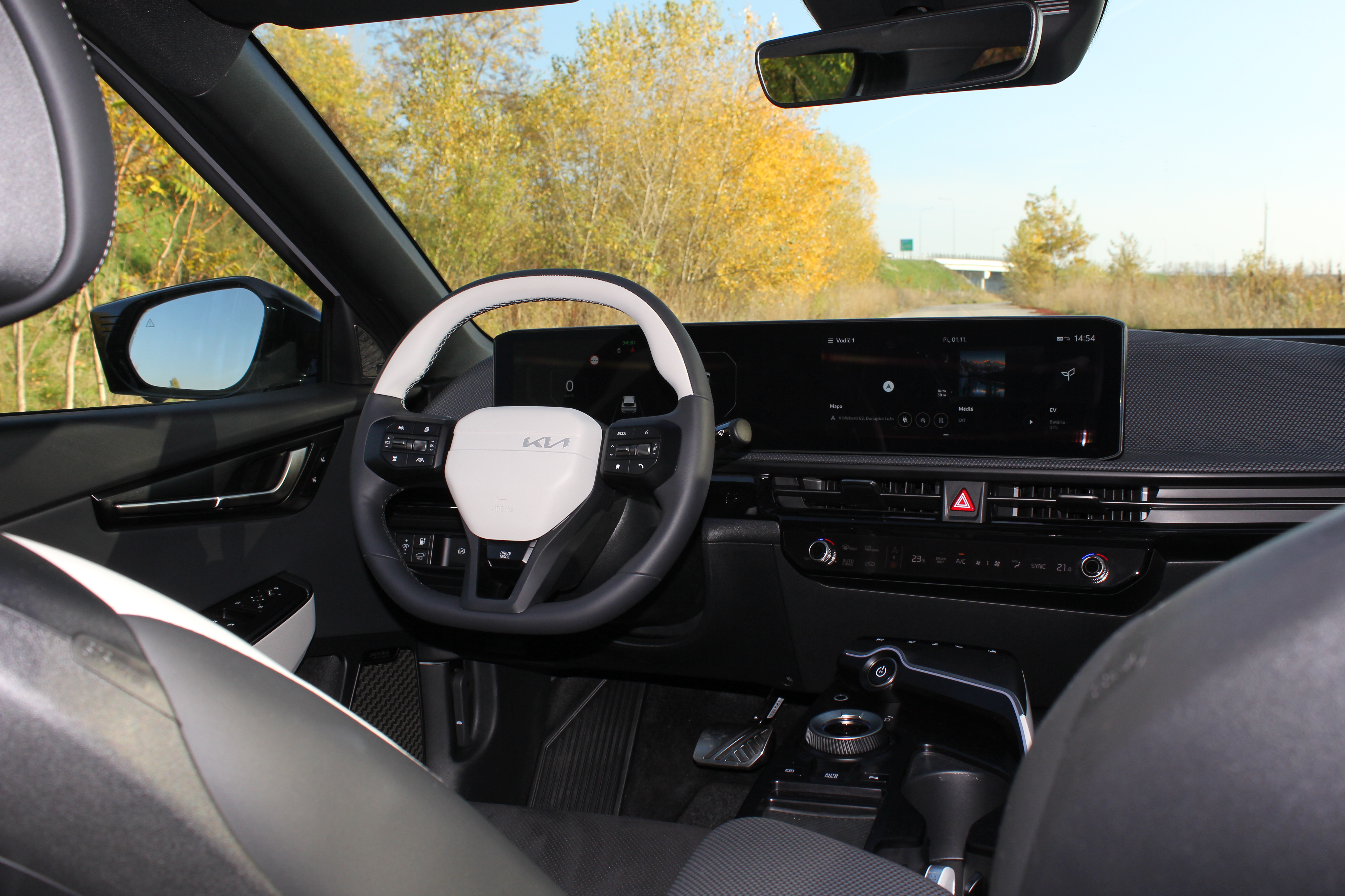 Dôležité funkcie sú vyvedené priamo na stredovú konzolu (vyhrievanie a ventilovanie sedadiel, kamera) a na volant, vrátane voľby jazdných režimov a nastavenia rekuperácie. Najmä tieto dve posledné uvedené funkcie budete využívať často jednak pre ich veľký účinok, tak pre ľahkú dostupnosť.