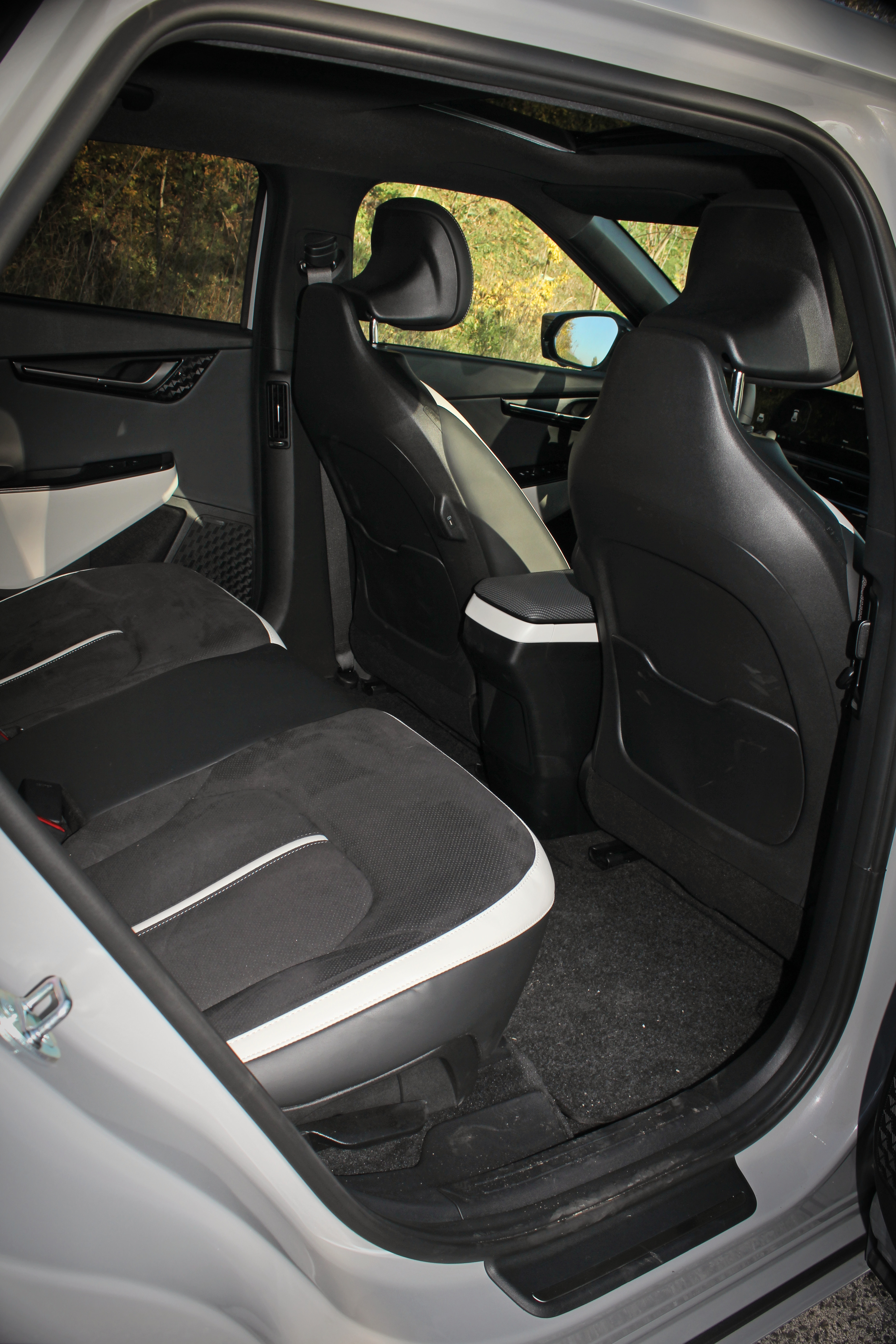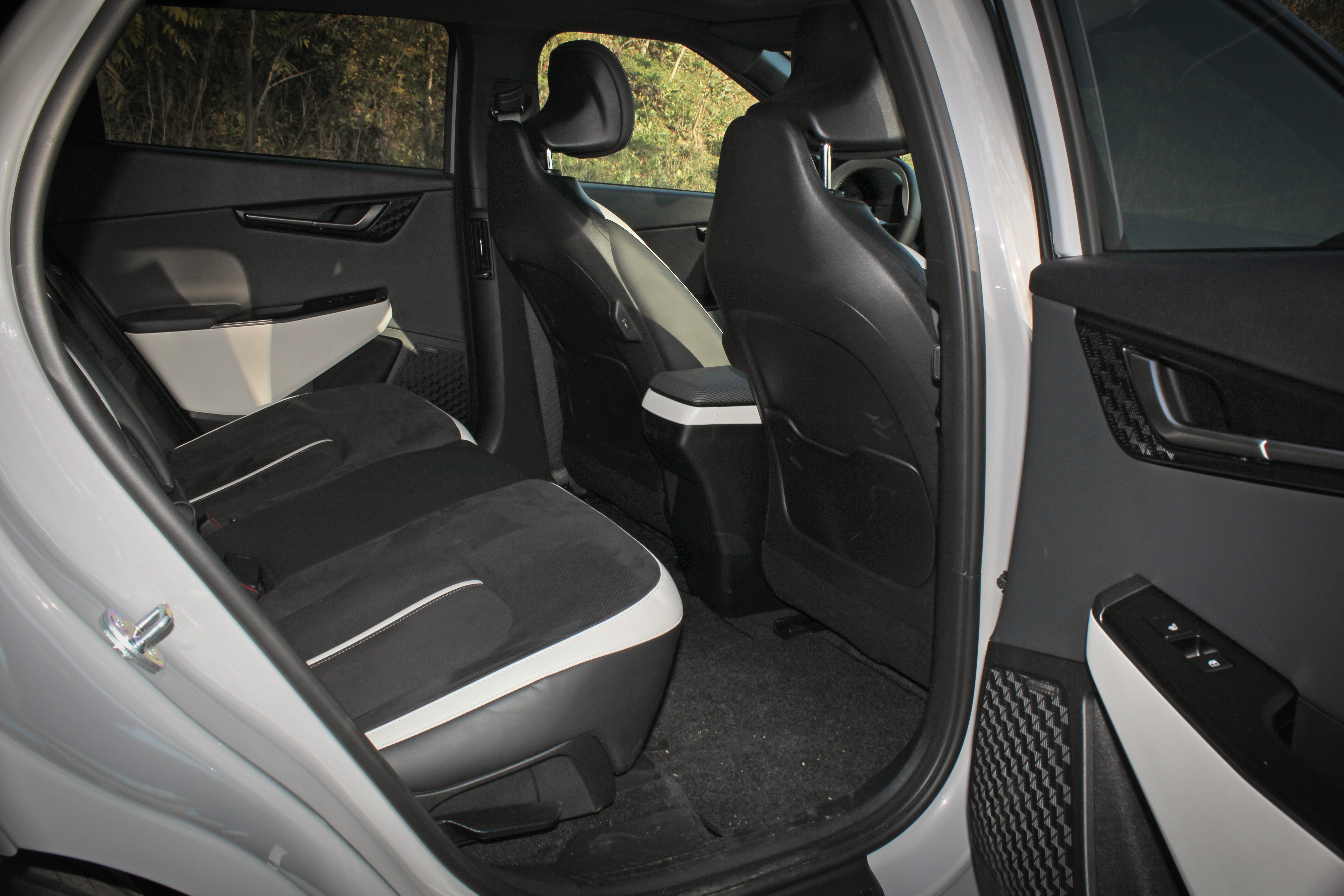Kvalita sedenia je vskutku skvelá, pretože výrobca skombinoval ideálne čalúnenie sedadiel, ktoré je estetické a v zime nechladí, v lete sa neprehrieva. Spoločne s primerane vysokými bočnicami a optimálnou tvrdosťou sedákov môžeme bez polemiky hovoriť o jedných z najlepších sedadiel medzi elektrickými crossovermi.
