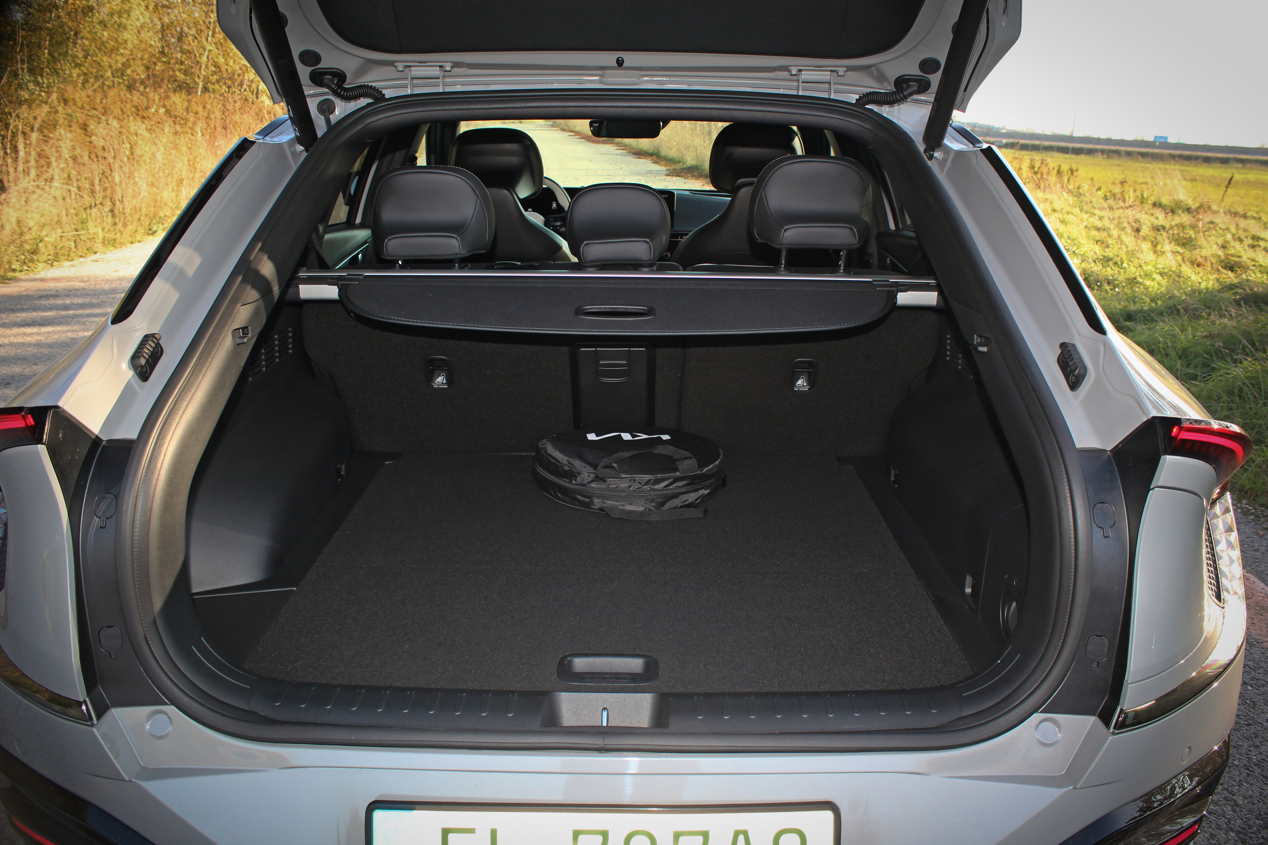 Za užitočné považujeme sklápanie zadných sedadiel z batožinového priestoru, dvojité dno kufra, elektrické otváranie piatych dverí a vôbec kapacitu nákladného priestoru až 480/520/1290 litrov. Ďalší malý kufor je pod prednou kapotou, tzv. frunk má 52 litrov a zmesí sa doň napríklad nabíjací kábel.