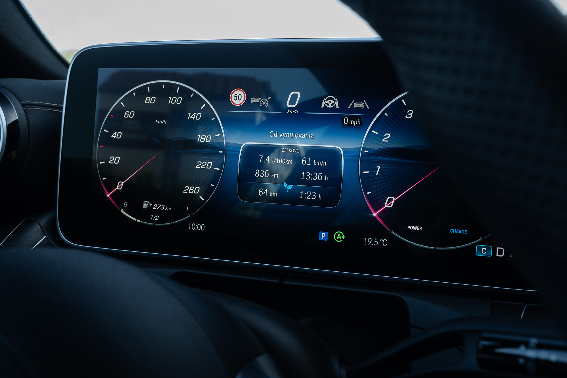 Predné sedadlá ale dokážu ukázať svoju správnu náturu. Veď sú extrémne pohodlné, môžu byť elektricky nastaviteľné a aj s ventiláciou a masážou. Táto verzia má všetko a aj v teplejších dňoch bola ventilácia len výhodou. Výhodou je vlastne celý interiér. Je jeden z najkvalitnejších, ktoré automobilka ponúka. Displej v strede predvádza najnovšiu generáciu MBUX, na ktorom môžete mať aj nulovú vrstvu, čí štandardné zobrazenie s ikonkami. CLE už používa tie nové ako zo smartfónu. Na hlavnom displeji je však jedna zásadná plocha. Vľavo hore dokážete zrušiť povinné upozornenie na rýchlostný limit. Nie je preto nutné ísť zdĺhavo cez menu, stačí jeden dotyk obrazovky.